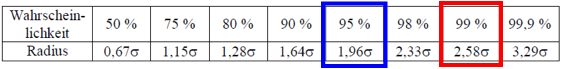 Die entsprechenden Radien der Annahmebereiche entnimmt man dabei folgender Tabelle: