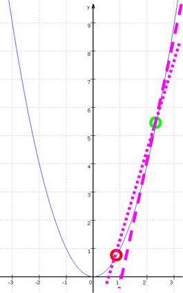 man nähert die "endgültige" Tangente --- in einem Punkt o
