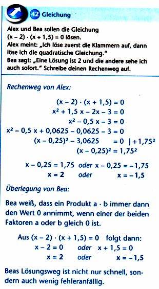 Insbesondere sollten die SchülerInnen aufgrund von Beas Weg lernen (wiederentdecken), wie ungemein praktisch es ist, wenn auf einer Gleichungsseite eine nackte Null steht - und notfalls dafür sorgen.