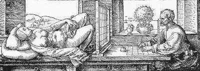 Immerhin Dürer (1471-1528) verwendet dann aber für seine Perspektivstudien schon (in der Mitte) ein Raster, also eine Art zweidimensionales Koordinatensystem