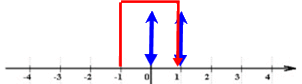 zwei verschiedenen Zahlen (-1 und 1) wird dieselbe Zahl (1) zugeordnet, weshalb Pfeile (ein blauer und ein roter) sich überlagern.