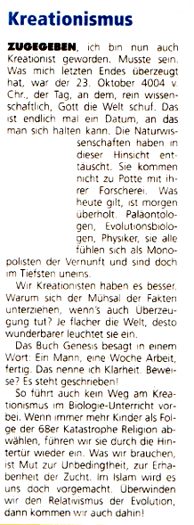 (wenn er nicht gerade in Fundamentalismus, also Kreationismus ausweicht)