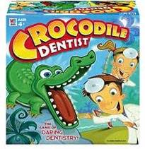 "It's your turn to be the dentist. Carefully choose one of the crocodile's teeth and press it down. But watch out for his sore [= wund] tooth! If you choose the wrong one, snap! the crocodile will playfully bite down and you're out of the game."