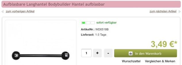 Meine bessere Hälfte hatte also mit einem viel höheren Gewicht der Kugel gerechnet.