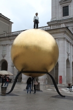 Die "wertig" spiegelnde Edelstahl-Kugel hat wohl in ihr die Vorstellung evoziert, dass die Kugel auch innen aus Edelstahl bestehe. Sie hatte also