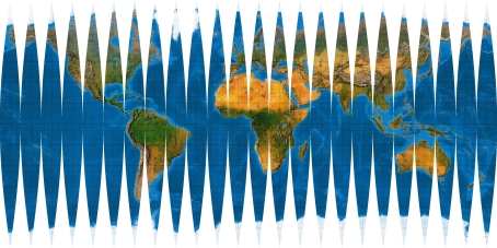 (und mit solchen Segmenten kann man dann umgekehrt einen annähernd kugelförmigen Globus herstellen).