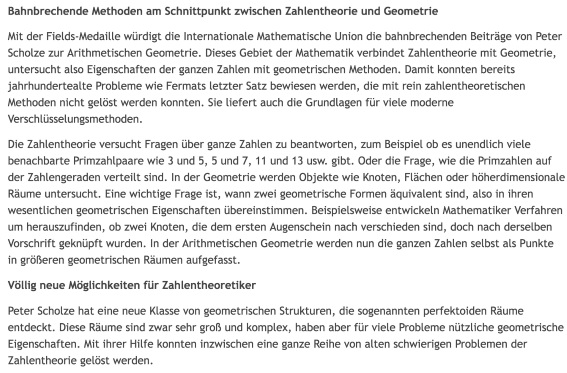 Um nun aber auf Scholzes mit der Fields-Medaille gewürdigte Mathematik zurückzukommen: