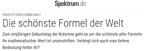 mangelt es an populärwissenschaftlichen Erklärungen (auch in der Schule) dafür, dass mathematische Gleichungen und Formeln praktisch sind, aber sogar einen ganz eigenen (wenn auch schwer zu vermittelnden) ästhetischen Reiz haben.
