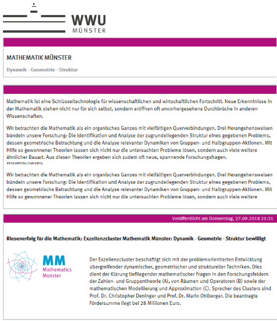 aus dem September 2018 über einen neuen münsteraner "Excellenzcluster"