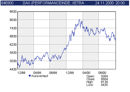 die Wendepunkte, d.h. die änderungen der Steigung, wichtig: ein gewiefter Börsenmakler hat ein untrügliches Gespür für die Punkte, in denen sich eine Trendwende andeutet (während alle anderen Aktionäre sich noch in eitel Sonnenschein oder Katerstimmung ergehen).