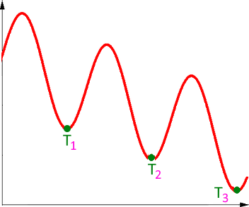 ein zweiter Tiefpunkt T2 , der tiefer liegt als der erste Tiefpunkt T1 :