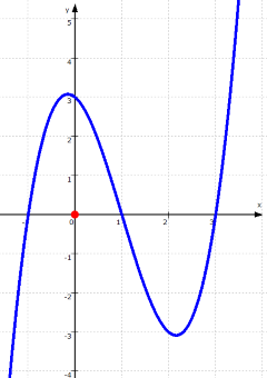 Der Funktionsgraph zur Funktionsgleichung f: y = 1•x3 - 3•x2 -1•x + 3 sieht so aus: