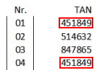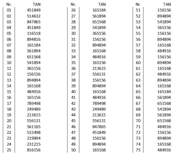 Von dieser TAN-Liste soll uns hier nur die erste Spalte interessieren, also