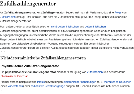 An den von mir rot unterstrichenen Stellen wird da deutlich, wie die (Pseudo-)Zufallszahlen mittels relativ einfacher, allerdings hier nicht erklärter Rechnungen ermittelt werden.