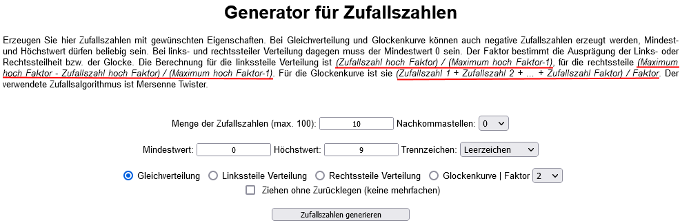 U.a. ergibt sich dabei die Frage, ob man an den Ergebnissen erkennen kann, dass es sich nur um Pseudozufallszahlen handelt; s.u.)