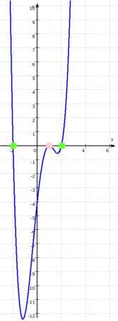 Das "intelligente" Verfahren ist also nicht nur einfacher, sondern macht auch ausgehend von den überdeutlichen Nullstellen besonders gut deutlich, wie der Graph der zugehörigen Funktion aussieht, nämlich etwa so: