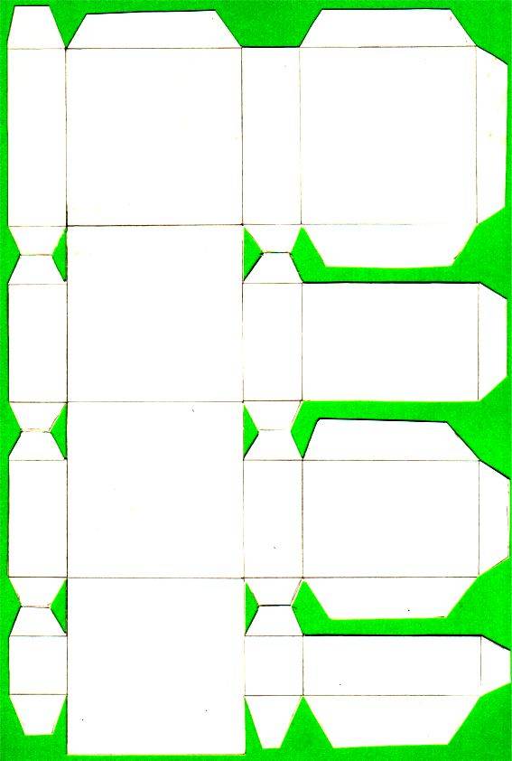geschnitten und geklebt werden durfte, aber alles aus einem einzigen, zusammenhängenden Stück Papier bzw. Pappe sein musste, und ich empfand es damals als regelrechte Herausforderung, was sich so alles unter dieser rigiden Voraussetzung (nicht) herstellen ließ.
