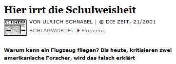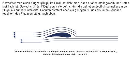 Außerdem dürften nach dieser Logik Kunstflüge über Kopf gar nicht möglich sein denn bei umgekehrtem Tragflügelprofil müsste sich nach der Schulbuchlogik auch das Druckverhältnis umkehren - und das Flugzeug abstürzen.")