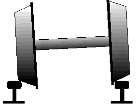 Eisenbahn: ohne genauere Erklärung sei hier nur erwähnt, dass sie nur deshalb sicher fährt, weil ihre Radkränze "schräg" sind und sich die Achsen deshalb immer wieder erneut einpendeln: