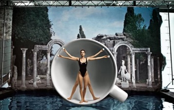 Die Besonderheit von Leonardos Skizze, die dann wohl auch zu ihrem Erfolg beigetragen hat, liegt aber darin, dass er den Menschen in zwei Körperhaltungen gleichzeitig, nämlich