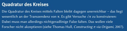 Man kann also fragen, ob vielleicht auch die Qudratur des Kreises "immerhin" mittels Origami möglich ist.