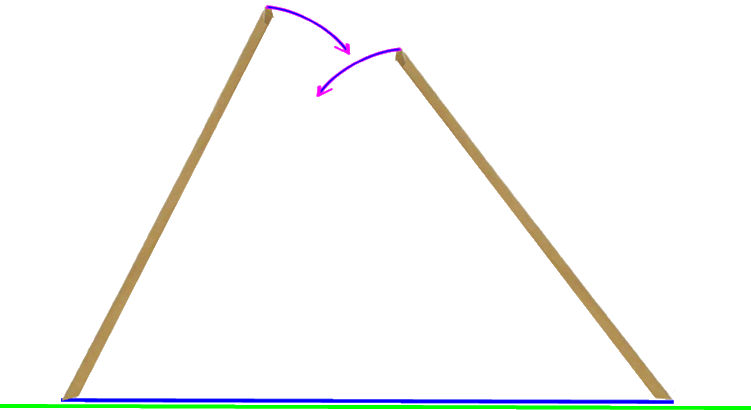 SchülerInnen neigen nun dazu, die beiden Hölzer genau so, wie sie hinterher in der Modellpyramide auftauchen, in die Luft zu halten und dann an der Spitze in zwei Meter Höhe miteinander zu verbinden, was natürlich eine ziemliche Wackelei setzt und zudem nicht ganz einfach (nur mit einer Leiter möglich) ist.