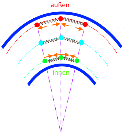 Was nun beim Biegen eines solchen „Druck- und Zug“-Kunststoffstreifen passiert, lässt sich nun in der Tat mit Druck- und Zugfedern illustrieren.