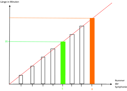 „Beethoven hat 9 Sinfonien geschrieben. Ein Orchester spielt die 5. Sinfonie in 35 Minuten. Wie lange benötigt das gleiche Orchester für die 8.?“