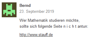 einE LehrerIn auf die Dauer sowieso keinen Kontakt zur aktuellen Mathematik mehr haben kann, da sie/er "Besseres" zu tun hat