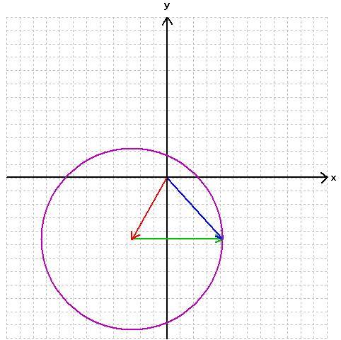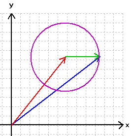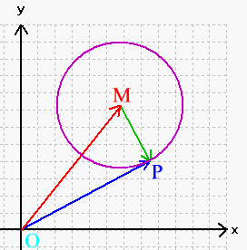Damit ergibt sich der Ortsvektor als Summe des Mittelpunktsvektors und des "Radiusvektors" :