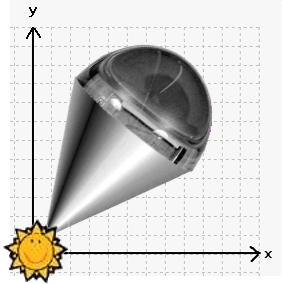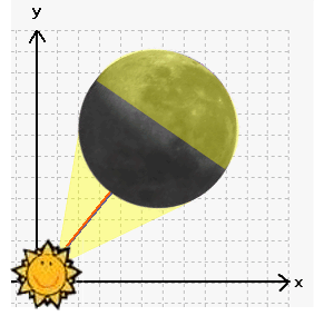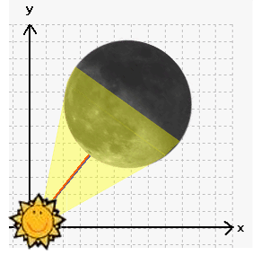 die andere Hälfte der Ortsvektoren/Sonnenstrahlen bescheint (arg widernatürlich) die sonnenabgewandte Seite der Sphäre/des Mondes: