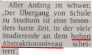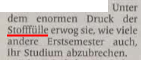 man (???) könnte sich ja mal fragen, ob es eigentlich nötig ist, gleich zu Beginn des Studiums mit so viel Stoff loszuknallen, oder ob nicht (eben zumindest anfangs) eine Stoffreduktion möglich (und sinnvoll!) wäre;
