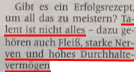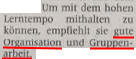 Nun sagt sich das so leicht: "Fleiß, starke Nerven und hohes Durchhaltevermögen", "gute [???] Organisation", "Gruppenarbeit" und "Nicht abschrecken lassen"