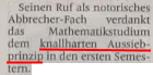 Dabei werden durchaus einige Gründe für die Verzweiflung vieler Mathestudenten und damit auch für die hohe Abbrecherzahl deutlich: