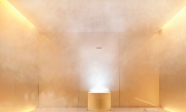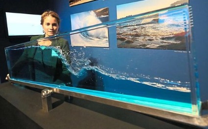 und die Ausstellungsbesucher animiert, das Wasser zu rühren und zu werfen und fallen zu lassen und verschiedene "Aggregat"-Zustände des Wassers