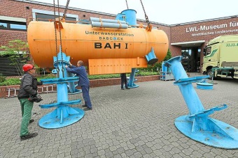 Da hat man also mit gigantischem Aufwand einen riesigen Metallzylinder herangekarrt, aber was soll's?: ohne Erklärung und vor allem Besichtigung von innen ist er doch nur eine größere Mülltonne. Vor allem aber: was besagt das Dingsbums über das Ausstellungsthema "Wasser"