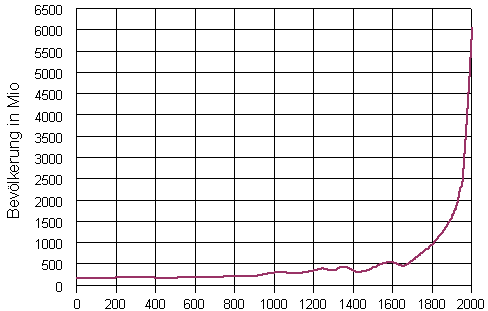 Und so kann die Ausgangsfunktion f z.B. auch von der Entwicklung der Erdbevölkerung im Laufe der letzten 2000 Jahre handeln: