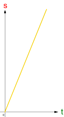 Weil die Wegfunktion linear ist, ist es dabei egal, wo man das Steigungsdreieck hinzeichnet und wie groß man es zeichnet: es kommt immer dieselbe Geschwindigkeit v / Steigung heraus, d.h. z.B., dass das Auto immer gleich schnell ist.