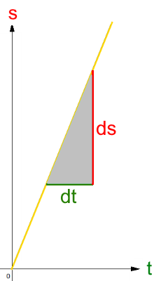 Geometrisch lässt sich die Geschwindigkeit v durch ein Steigungsdreieck erfassen
