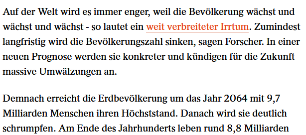 wächst die Anzahl der Menschen auf der Erde laut der Hochrechnung durchaus noch bis 2064 weiter