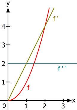 Wie immer, so benötigt man auch hier die Ableitungen f ' und f ' ' nur, um mittels dieser beiden Ableitungen Aussagen über die Ausgangsfunktion f machen zu können. Wir gehen hier mal umgekehrt vor, arbeiten uns also von f ' ' über f ' zu f hoch: