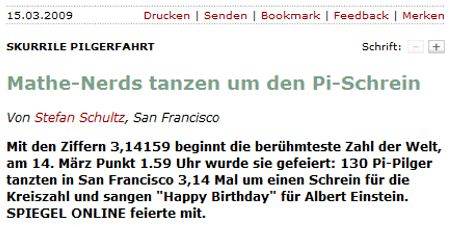 All das heißt aber eben auch nicht, dass die ausführlichere Behandlung von π im Matheunterricht überflüssig oder "sinnlos" und automatisch für die "Endabnehmer" uninteressant wäre! Zu der "anderen Ebene" (s.u.), auf der die ausführliche Behandlung durchaus "was bringt" und vielleicht sogar interessant sein kann, muss man eben "nur" verführen! |