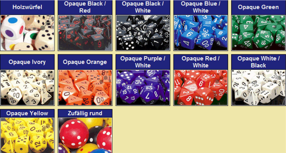 , also eine Kugel, die sozusagen ein 1seitiger Würfel ist.Der Nachteil ist allerdings nicht nur, dass man immer neue "Würfel" zur Hand nehmen muss, sondern auch, dass man diese neuen "Würfel" auch andauernd (je nach Spielverlauf) anders beschriften muss. Wenn z.B. bei
