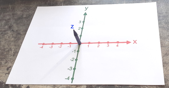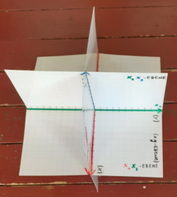 hinzu,Wenn wir uns das zweidimensionale Koordinatensystem so vorstellen, dass es wie in einem Schulheft auf einem Schreibtisch liegt, so kann das nur bedeuten, dass die z-Achse