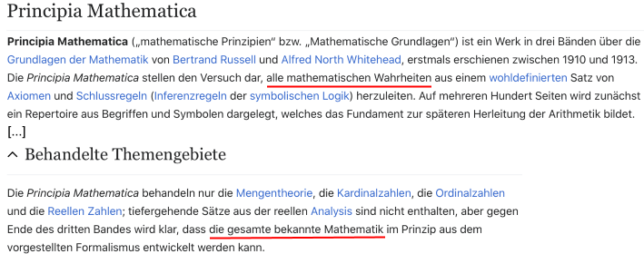 ein erster Schritt auf dem Weg zum großen Ziel, die gesamte Mathematik