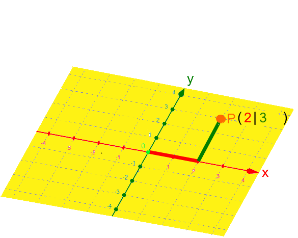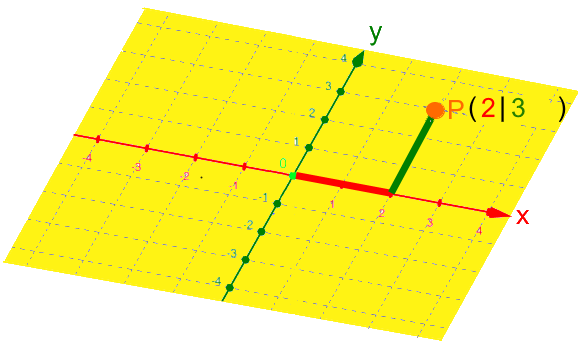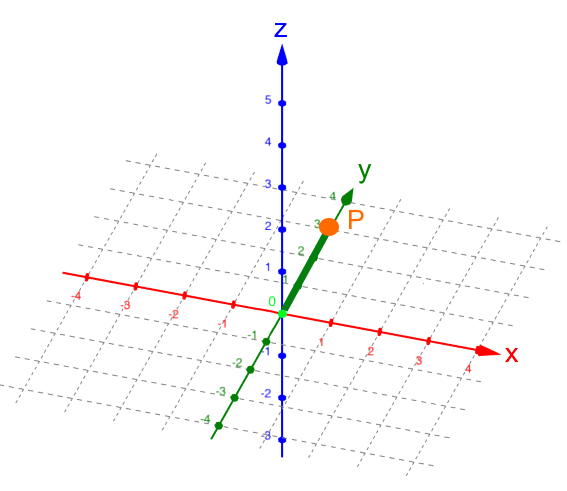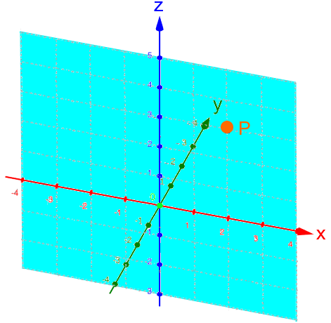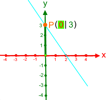 Da P auf der y-Achse liegt, brauchen wir die x- und die z-Achse eigentlich gar nicht: