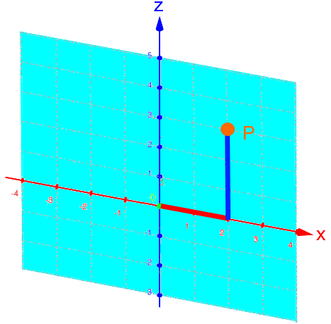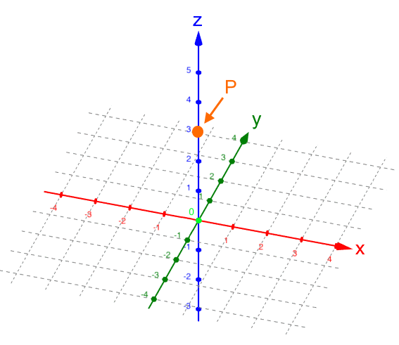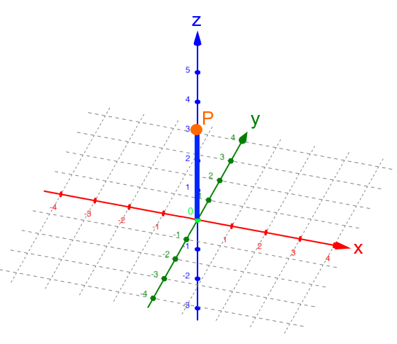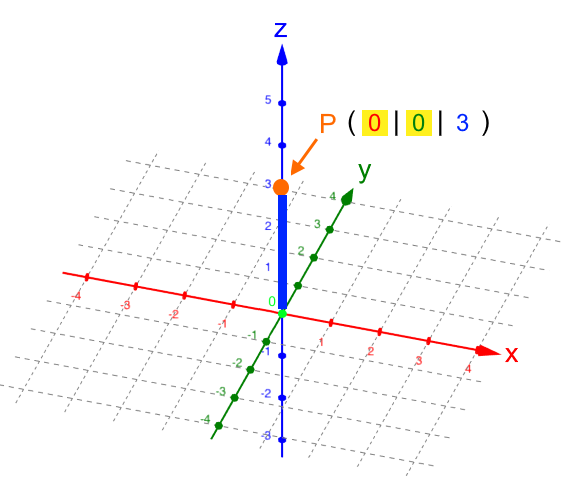 Da P auf der z-Achse liegt, brauchen wir die x- und die y-Achse eigentlich gar nicht: