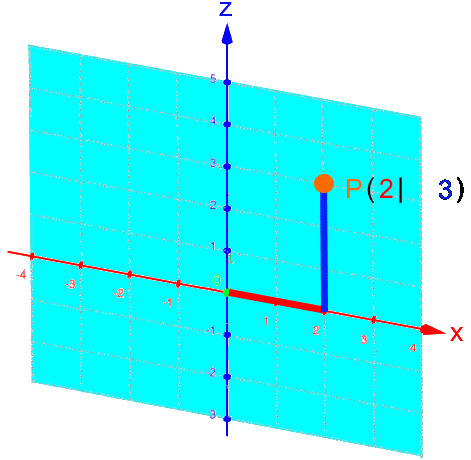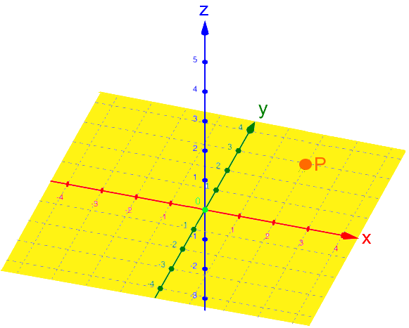 Da P in der xy-Ebene liegt, brauchen wir die xz- und die yz-Ebene eigentlich gar nicht: