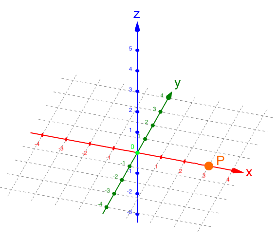 Da P auf der x-Achse liegt, brauchen wir die y- und die z-Achse eigentlich gar nicht: