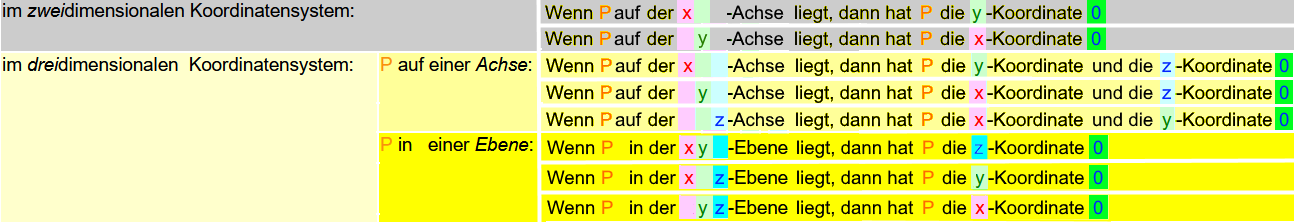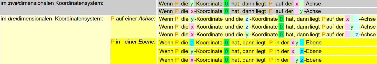 Schüler sollten sich eigentlich immer freuen, wenn der Lehrer so ausnehmend nett ist, in Aufgaben Punkte auf den Achsen bzw. in den von ihnen aufgespannten Ebenen vorzugeben, wird durch die Nullen das Rechnen